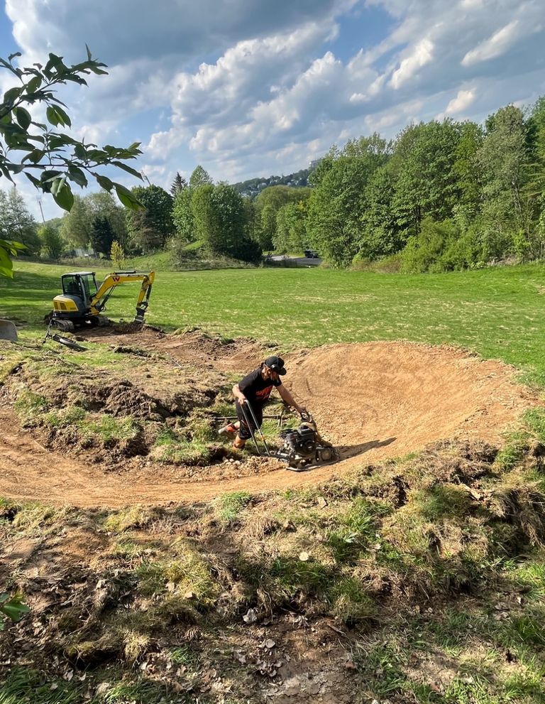 Ganz nach dem Motto „bring back the flow“ durften wir, nach dem Umbau des ersten Segments 2023 per Hand, nun auch das zweite Segment der Vereinsstrecke mit dem Bagger wieder zum Leben erwecken. Die Anlieger wurden im Radius und der Höhe angepasst, sodass nun Schwung für die zum Teil neu angelegten Features aufgebaut werden kann. Für den optimalen Wasserabfluss wurden u.a. massive Stein-Drainagen angelegt.