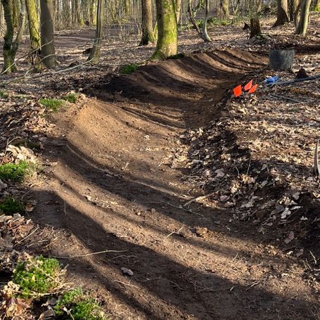 Hier haben wir zu zweit in kürzester Zeit zwei Strecken gebaut die an die Vereins-Strecke anknüpfen. Die Arbeiten wurden von uns mit einem 5,5t Bagger sowie per Hand durchgeführt. Der umliegende Bereich wurde renaturiert.
